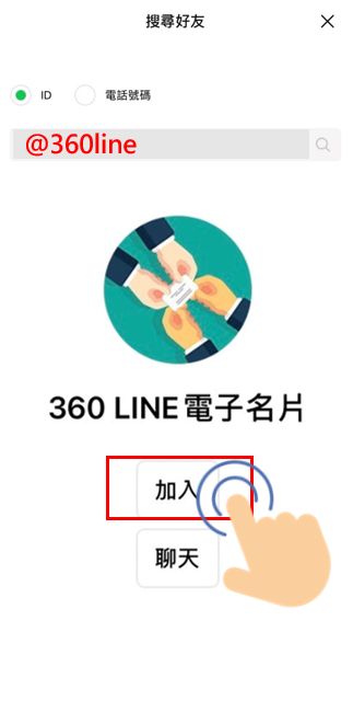 目錄 搜索 展開 360LINE電子名片一、購買流程1.購買序號2.至購物車結帳3.填寫帳單地址 (非必填)4.確認付款方式5.確認訂單6.訂單提交7.匯款完成,啟用序號二、開通、啟用序號流程1.搜尋ID : @360line 加入2.點選註冊/登入3.會員帳號設置三、啟用序號方法(一)方法(二)四、360LINE官方帳號使用說明1.查找名片2.我的名片3.分享我的名片4.編輯名片5.推薦好友6.會員資料 暫無相關搜索結果! 閱讀次數:777 本文檔使用 CLEARONE 發布 1.搜尋ID : @360line 加入 二、註冊、開通序號流程1. 搜尋ID : @360line 加入作者:Anne 创建时间:2022-06-20 13:16最后编辑:Anne 更新时间:2022-06-21 08:57